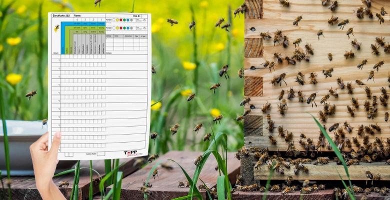 Dokumentieren Sie Ihre Arbeit an den Bienen! Für jedes Bienenvolk sollte jeder Imker eine Stockkarte führen, die nachvollziehbare den Zustand, die wichtigsten Tätigkeiten, sowie Erweiterungen, Fütterung und Varroa-Behandlungen festhält. Diese Notizen sind ein wertvoller Hinweis, um eine Schwarmneigung zu erkennen, rechtzeitig den Drohnenrahmen zu schneiden und die Honigernte zu planen. Natürlich gibt es heute auch viele Möglichkeiten, die Imkerarbeit digital zu dokumentieren. Jedoch wird beim Imkern das Smartphone oder iPad sehr leicht mit Propolis hartnäckig verschmutzt und schließlich werden die Informationen am Bienenstock benötigt und nicht primär in der digitalen Cloud.